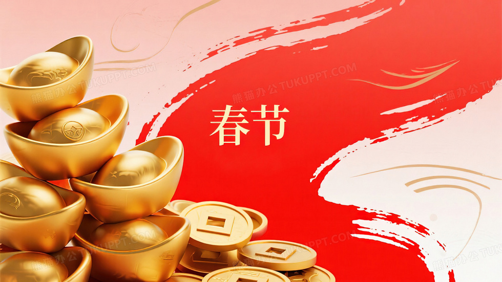 本作品内容为金元宝春节简约背景图, 格式为 jpg, 大小5 MB, 图片尺寸为3328 x 1872, 作品中背景图片无需修改, 源文件无水印,可以直接使用, 欢迎使用熊猫办公。 如认为平台内容涉嫌侵权,可通过邮件:tousu@tukuppt.com提出书面通知,我们将及时处理。