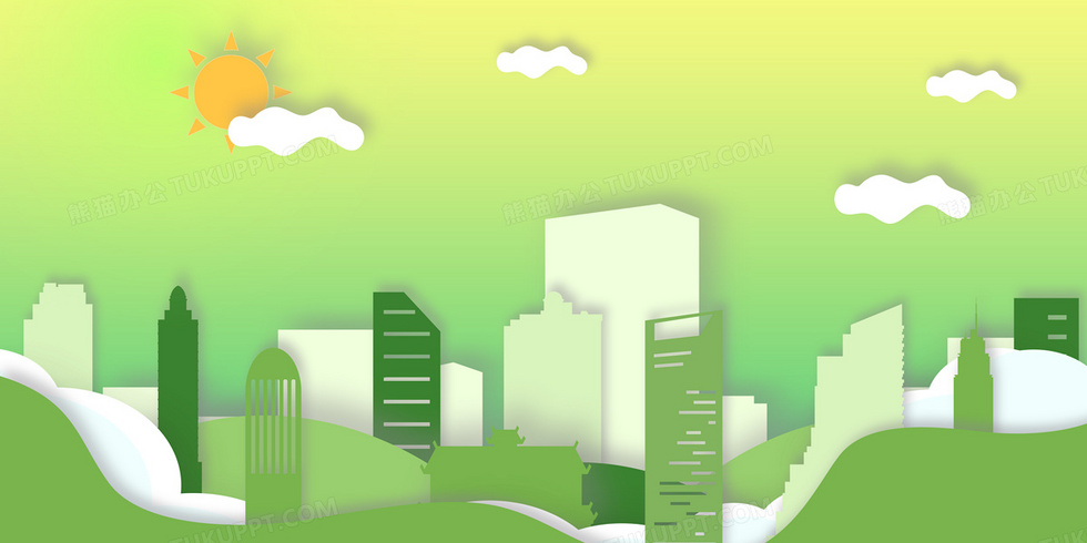 本作品内容为绿色渐变剪纸风清新城市背景素材, 格式为 psd, 大小15 MB, 图片尺寸为4724 x 2362, 作品中背景图片无需修改, 源文件无水印,可以直接使用, 欢迎使用熊猫办公。 如认为平台内容涉嫌侵权,可通过邮件:tousu@tukuppt.com提出书面通知,我们将及时处理。