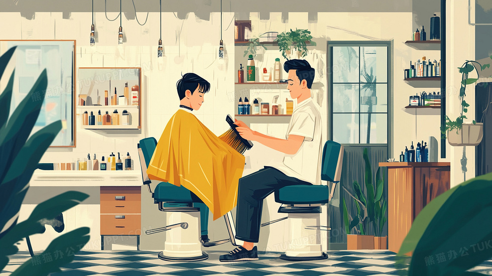 本作品内容为理发师职业人物工作插画, 格式为 jpg, 大小3 MB, 图片尺寸为2912 x 1632, 源文件无水印, 欢迎使用熊猫办公。 如认为平台内容涉嫌侵权,可通过邮件:tousu@tukuppt.com提出书面通知,我们将及时处理。