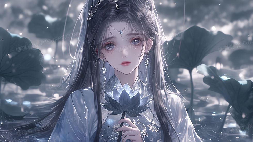 本作品内容为中国风古风美女手拿黑莲花人物插画, 格式为 jpg, 大小3 MB, 图片尺寸为2912 x 1632, 源文件无水印, 欢迎使用熊猫办公。 如认为平台内容涉嫌侵权,可通过邮件:tousu@tukuppt.com提出书面通知,我们将及时处理。