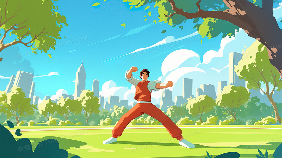 本作品内容为清晨公园练习中国功夫太极拳男子插画, 格式为 jpg, 大小3 MB, 图片尺寸为2912 x 1632, 源文件无水印, 欢迎使用熊猫办公。 如认为平台内容涉嫌侵权,可通过邮件:tousu@tukuppt.com提出书面通知,我们将及时处理。