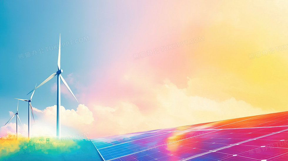 本作品内容为新能源节能风车光伏板环保背景, 格式为 jpg, 大小2 MB, 图片尺寸为2912 x 1632, 作品中背景图片无需修改, 源文件无水印,可以直接使用, 欢迎使用熊猫办公。 如认为平台内容涉嫌侵权,可通过邮件:tousu@tukuppt.com提出书面通知,我们将及时处理。