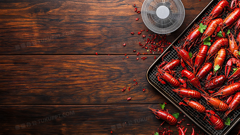 本作品内容为简约风麻辣小龙虾背景, 格式为 jpg, 大小6 MB, 图片尺寸为2912 x 1632, 作品中背景图片无需修改, 源文件无水印,可以直接使用, 欢迎使用熊猫办公。 如认为平台内容涉嫌侵权,可通过邮件:tousu@tukuppt.com提出书面通知,我们将及时处理。