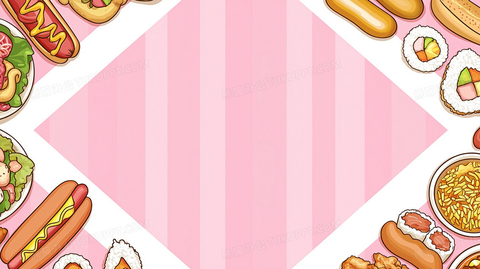 本作品内容为卡通美食汉堡装饰边框背景, 格式为 jpg, 大小2 MB, 图片尺寸为2912 x 1632, 作品中背景图片无需修改, 源文件无水印,可以直接使用, 欢迎使用熊猫办公。 如认为平台内容涉嫌侵权,可通过邮件:tousu@tukuppt.com提出书面通知,我们将及时处理。