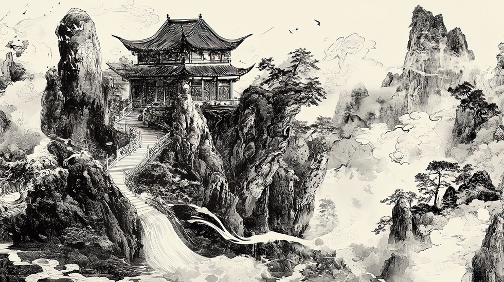 首页 > 插画 > 科技艺术 > 中国风 > 水墨写意山水画假山奇石唯美插画