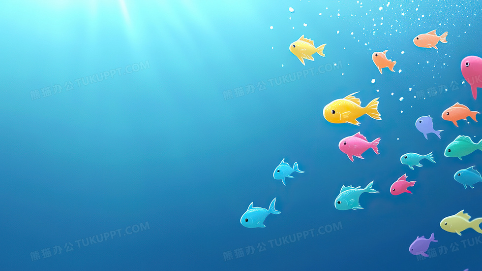 本作品内容为卡通风海底的一群鱼背景, 格式为 jpg, 大小4 MB, 图片尺寸为2912 x 1632, 作品中背景图片无需修改, 源文件无水印,可以直接使用, 欢迎使用熊猫办公。 如认为平台内容涉嫌侵权,可通过邮件:tousu@tukuppt.com提出书面通知,我们将及时处理。