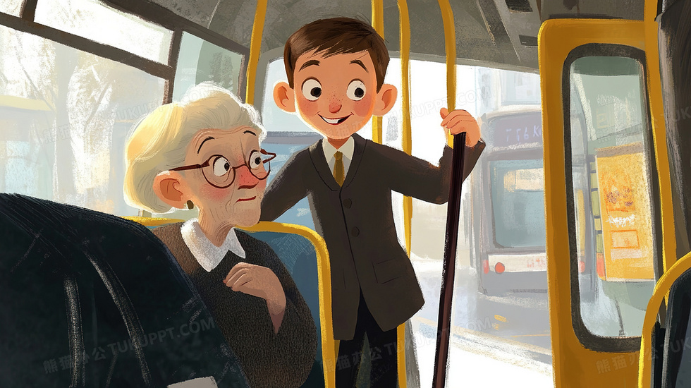 本作品内容为雷锋日关爱老人公交车上帮助老人插画, 格式为 jpg, 大小3 MB, 图片尺寸为2912 x 1632, 源文件无水印, 欢迎使用熊猫办公。 如认为平台内容涉嫌侵权,可通过邮件:tousu@tukuppt.com提出书面通知,我们将及时处理。