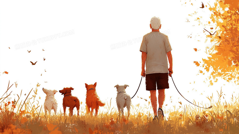 本作品内容为老年人遛狗活动背景, 格式为 jpg, 大小2 MB, 图片尺寸为2912 x 1632, 作品中背景图片无需修改, 源文件无水印,可以直接使用, 欢迎使用熊猫办公。 如认为平台内容涉嫌侵权,可通过邮件:tousu@tukuppt.com提出书面通知,我们将及时处理。