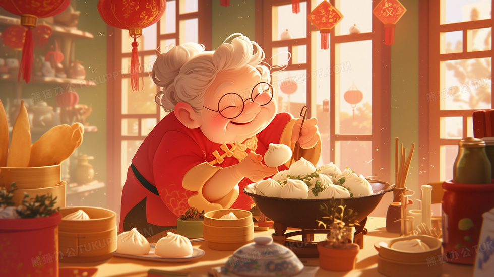 本作品内容为冬日在家包包子的老奶奶插画, 格式为 jpg, 大小5 MB, 图片尺寸为2912 x 1632, 源文件无水印, 欢迎使用熊猫办公。 如认为平台内容涉嫌侵权,可通过邮件:tousu@tukuppt.com提出书面通知,我们将及时处理。
