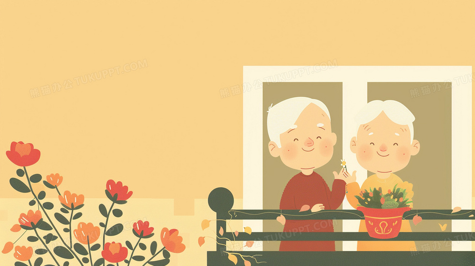 本作品内容为卡通老年人阳台养花背景, 格式为 jpg, 大小2 MB, 图片尺寸为2912 x 1632, 作品中背景图片无需修改, 源文件无水印,可以直接使用, 欢迎使用熊猫办公。 如认为平台内容涉嫌侵权,可通过邮件:tousu@tukuppt.com提出书面通知,我们将及时处理。