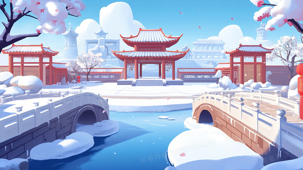 本作品内容为中国风建筑冬天场景雪地下雪插画, 格式为 jpg, 大小3 MB, 图片尺寸为2912 x 1632, 源文件无水印, 欢迎使用熊猫办公。 如认为平台内容涉嫌侵权,可通过邮件:tousu@tukuppt.com提出书面通知,我们将及时处理。