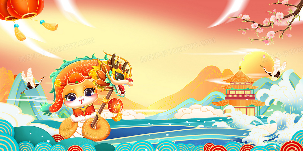 本作品内容为国潮中国风2025新年蛇年吉祥物新年背景, 格式为 psd, 大小30 MB, 图片尺寸为4724 x 2362, 作品中背景图片无需修改, 源文件无水印,可以直接使用, 欢迎使用熊猫办公。 如认为平台内容涉嫌侵权,可通过邮件:tousu@tukuppt.com提出书面通知,我们将及时处理。