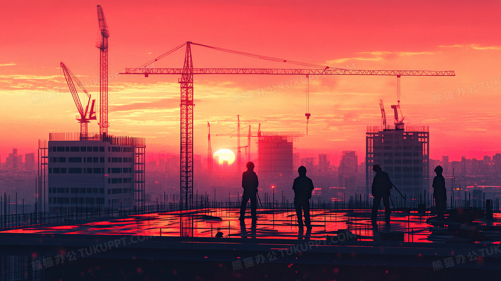 本作品内容为塔吊建筑施工工人工作夕阳插画, 格式为 jpg, 大小3 MB, 图片尺寸为2912 x 1632, 源文件无水印, 欢迎使用熊猫办公。 如认为平台内容涉嫌侵权,可通过邮件:tousu@tukuppt.com提出书面通知,我们将及时处理。