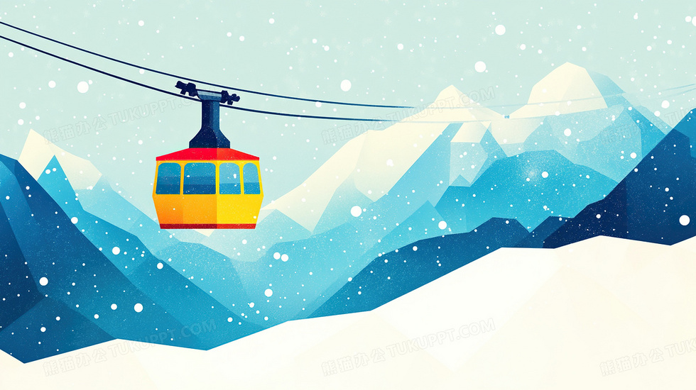 本作品内容为冬季缆车场景插画, 格式为 jpg, 大小3 MB, 图片尺寸为2912 x 1632, 源文件无水印, 欢迎使用熊猫办公。 如认为平台内容涉嫌侵权,可通过邮件:tousu@tukuppt.com提出书面通知,我们将及时处理。