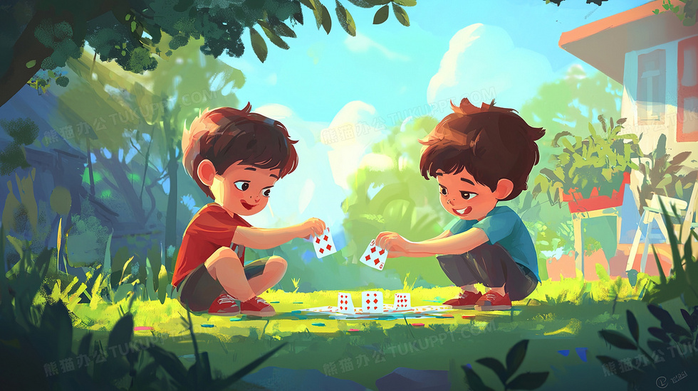 本作品内容为户外玩卡牌扑克的卡通男孩插画, 格式为 jpg, 大小3 MB, 图片尺寸为2912 x 1632, 源文件无水印, 欢迎使用熊猫办公。 如认为平台内容涉嫌侵权,可通过邮件:tousu@tukuppt.com提出书面通知,我们将及时处理。