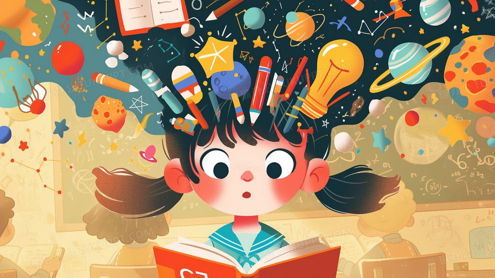 本作品内容为女孩看书状态下的天马行空创意插画, 格式为 jpg, 大小5 MB, 图片尺寸为2912 x 1632, 源文件无水印, 欢迎使用熊猫办公。 如认为平台内容涉嫌侵权,可通过邮件:tousu@tukuppt.com提出书面通知,我们将及时处理。