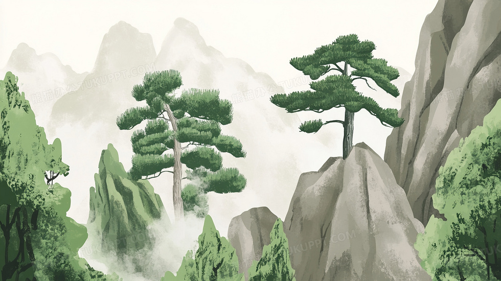 本作品内容为中国风植物不老松松柏水墨画插画, 格式为 jpg, 大小3 MB, 图片尺寸为2912 x 1632, 源文件无水印, 欢迎使用熊猫办公。 如认为平台内容涉嫌侵权,可通过邮件:tousu@tukuppt.com提出书面通知,我们将及时处理。
