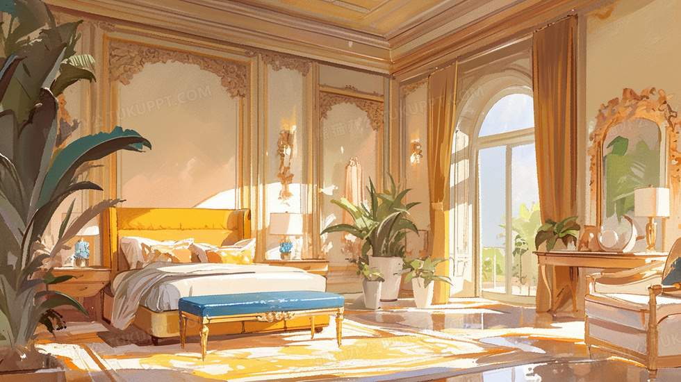 本作品内容为手绘干净舒适温馨的卧室场景插画, 格式为 jpg, 大小3 MB, 图片尺寸为2912 x 1632, 源文件无水印, 欢迎使用熊猫办公。 如认为平台内容涉嫌侵权,可通过邮件:tousu@tukuppt.com提出书面通知,我们将及时处理。