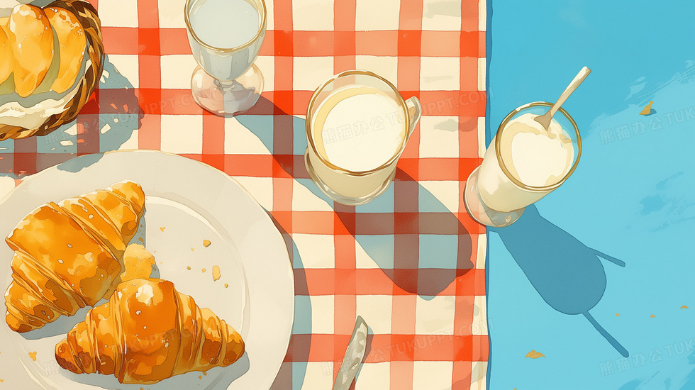 本作品内容为红色的格子桌布上摆着可颂面包插画, 格式为 jpg, 大小7 MB, 图片尺寸为2912 x 1632, 源文件无水印, 欢迎使用熊猫办公。 如认为平台内容涉嫌侵权,可通过邮件:tousu@tukuppt.com提出书面通知,我们将及时处理。