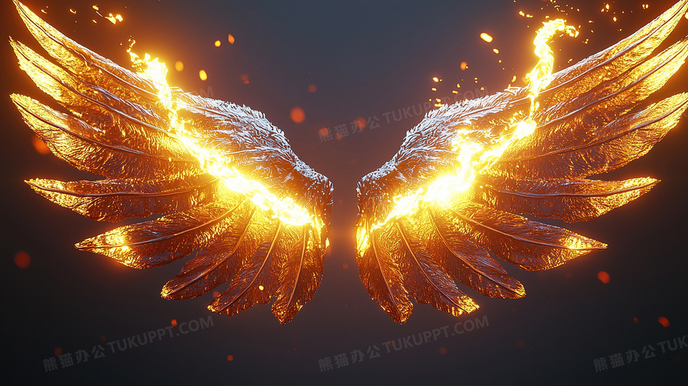 本作品内容为金色酷炫梦幻发光翅膀背景, 格式为 jpg, 大小4 MB, 图片尺寸为2912 x 1632, 作品中背景图片无需修改, 源文件无水印,可以直接使用, 欢迎使用熊猫办公。 如认为平台内容涉嫌侵权,可通过邮件:tousu@tukuppt.com提出书面通知,我们将及时处理。