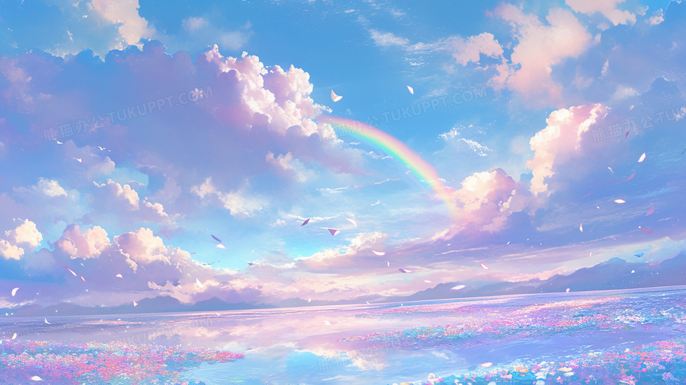 本作品内容为梦幻彩虹天空唯美风景插画, 格式为 jpg, 大小3 MB, 图片尺寸为2912 x 1632, 源文件无水印, 欢迎使用熊猫办公。 如认为平台内容涉嫌侵权,可通过邮件:tousu@tukuppt.com提出书面通知,我们将及时处理。
