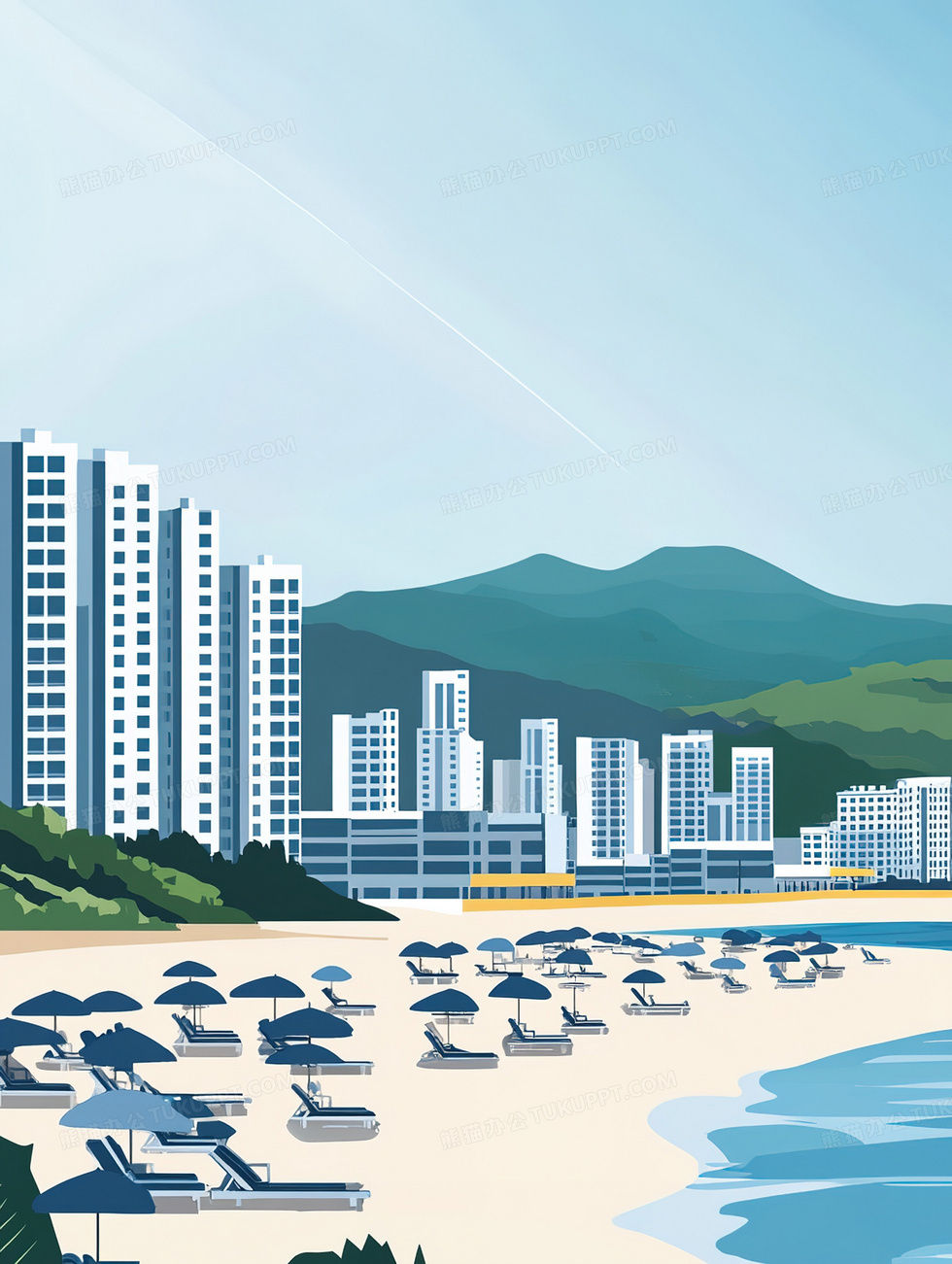 本作品内容为蓝天海边沙滩背景, 格式为 jpg, 大小2 MB, 图片尺寸为1856 x 2464, 作品中背景图片无需修改, 源文件无水印,可以直接使用, 欢迎使用熊猫办公。 如认为平台内容涉嫌侵权,可通过邮件:tousu@tukuppt.com提出书面通知,我们将及时处理。