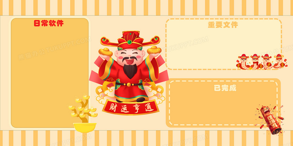 本作品内容为创意财神分区电脑壁纸背景, 格式为 psd, 大小10 MB, 图片尺寸为4724 x 2362, 作品中背景图片无需修改, 源文件无水印,可以直接使用, 欢迎使用熊猫办公。 如认为平台内容涉嫌侵权,可通过邮件:tousu@tukuppt.com提出书面通知,我们将及时处理。