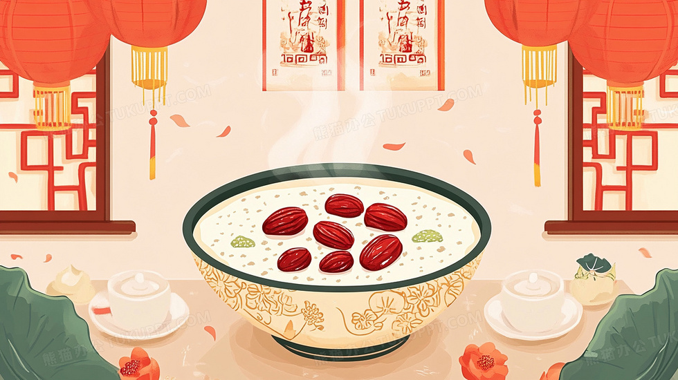 本作品内容为腊八节红枣腊八粥节日饮食插画, 格式为 jpg, 大小3 MB, 图片尺寸为2912 x 1632, 源文件无水印, 欢迎使用熊猫办公。 如认为平台内容涉嫌侵权,可通过邮件:tousu@tukuppt.com提出书面通知,我们将及时处理。