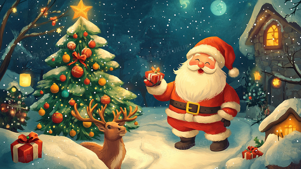 本作品内容为圣诞节雪地圣诞老人麋鹿圣诞树插画, 格式为 jpg, 大小4 MB, 图片尺寸为2912 x 1632, 源文件无水印, 欢迎使用熊猫办公。 如认为平台内容涉嫌侵权,可通过邮件:tousu@tukuppt.com提出书面通知,我们将及时处理。