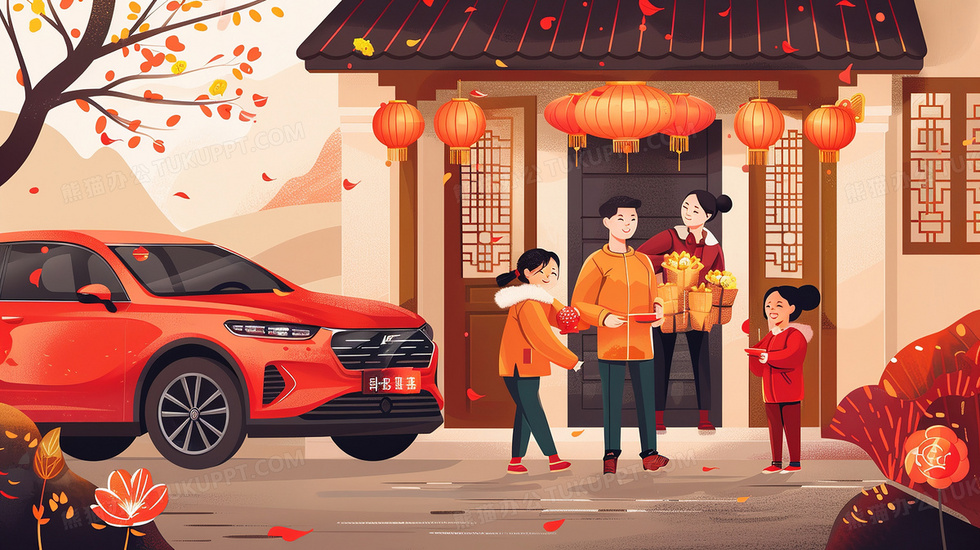 本作品内容为春节人们带着礼物来到亲戚家门口走亲戚插画, 格式为 jpg, 大小3 MB, 图片尺寸为2912 x 1632, 源文件无水印, 欢迎使用熊猫办公。 如认为平台内容涉嫌侵权,可通过邮件:tousu@tukuppt.com提出书面通知,我们将及时处理。