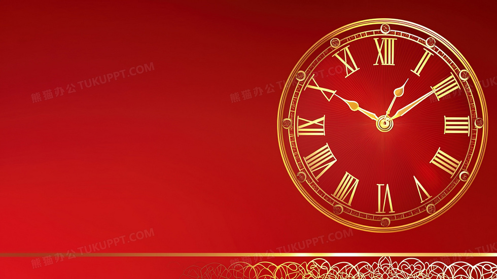 本作品内容为欧式红金色倒计时挂钟创意背景, 格式为 jpg, 大小2 MB, 图片尺寸为2912 x 1632, 作品中背景图片无需修改, 源文件无水印,可以直接使用, 欢迎使用熊猫办公。 如认为平台内容涉嫌侵权,可通过邮件:tousu@tukuppt.com提出书面通知,我们将及时处理。