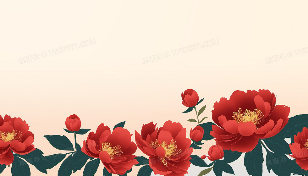 本作品内容为简约红色花卉背景, 格式为 jpg, 大小8 MB, 图片尺寸为5376 x 3072, 作品中背景图片无需修改, 源文件无水印,可以直接使用, 欢迎使用熊猫办公。 如认为平台内容涉嫌侵权,可通过邮件:tousu@tukuppt.com提出书面通知,我们将及时处理。