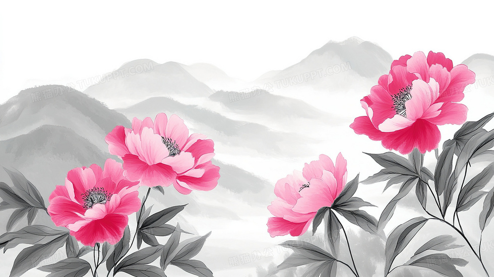 本作品内容为中国风植物水墨画风格牡丹花插画, 格式为 jpg, 大小3 MB, 图片尺寸为2912 x 1632, 源文件无水印, 欢迎使用熊猫办公。 如认为平台内容涉嫌侵权,可通过邮件:tousu@tukuppt.com提出书面通知,我们将及时处理。