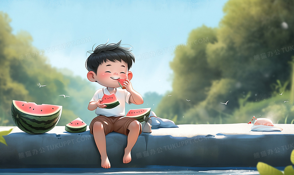 本作品内容为可爱的男孩坐在河边吃西瓜, 格式为 jpg, 大小3 MB, 图片尺寸为2848 x 1696, 源文件无水印, 欢迎使用熊猫办公。 如认为平台内容涉嫌侵权,可通过邮件:tousu@tukuppt.com提出书面通知,我们将及时处理。