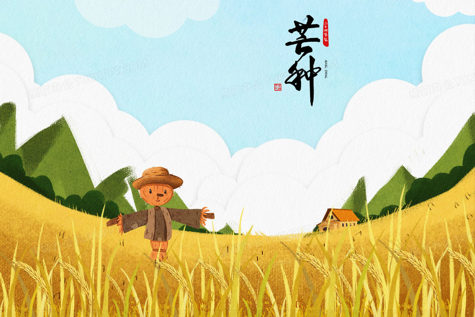 本作品内容为卡通稻草人麦田芒种节气插画, 格式为 psd, 大小114 MB, 请使用软件PhotoShop(CS6)打开, 源文件无水印, 欢迎使用熊猫办公。 如认为平台内容涉嫌侵权,可通过邮件:tousu@tukuppt.com提出书面通知,我们将及时处理。