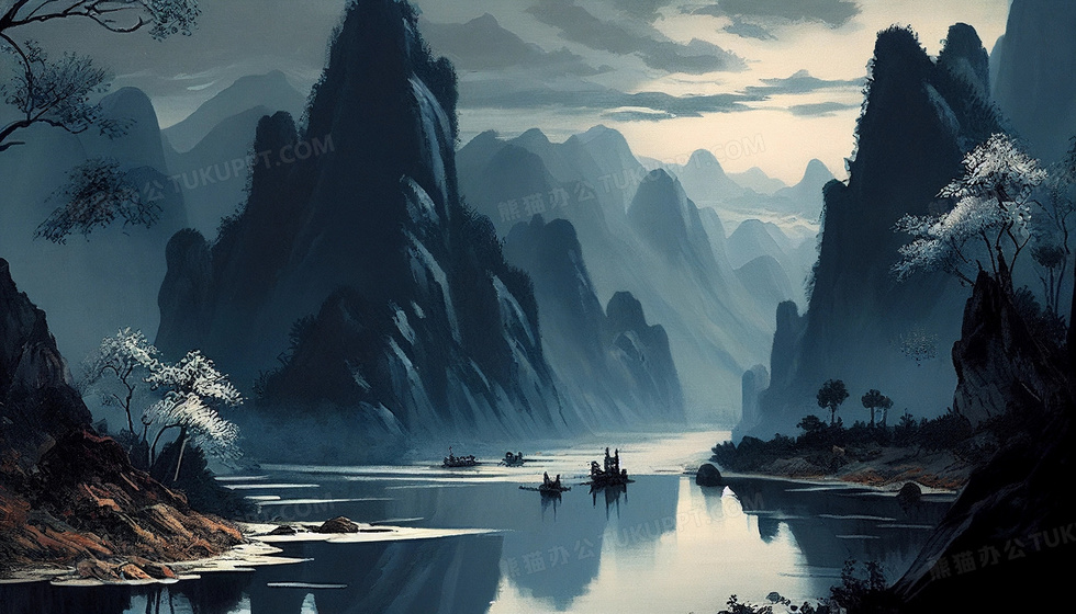本作品内容为山水画中国千里江山图古风插画, 格式为 jpg, 大小3 MB, 图片尺寸为2688 x 1536, 源文件无水印, 欢迎使用熊猫办公。 如认为平台内容涉嫌侵权,可通过邮件:tousu@tukuppt.com提出书面通知,我们将及时处理。
