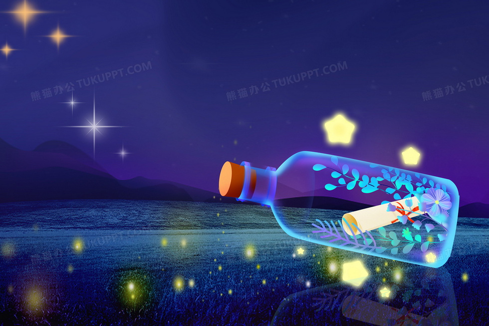 本作品内容为浪漫星空漂流瓶文艺清新夜景插画, 格式为 psd, 大小68 MB, 请使用软件PhotoShop(CS6)打开, 源文件无水印, 欢迎使用熊猫办公。 如认为平台内容涉嫌侵权,可通过邮件:tousu@tukuppt.com提出书面通知,我们将及时处理。