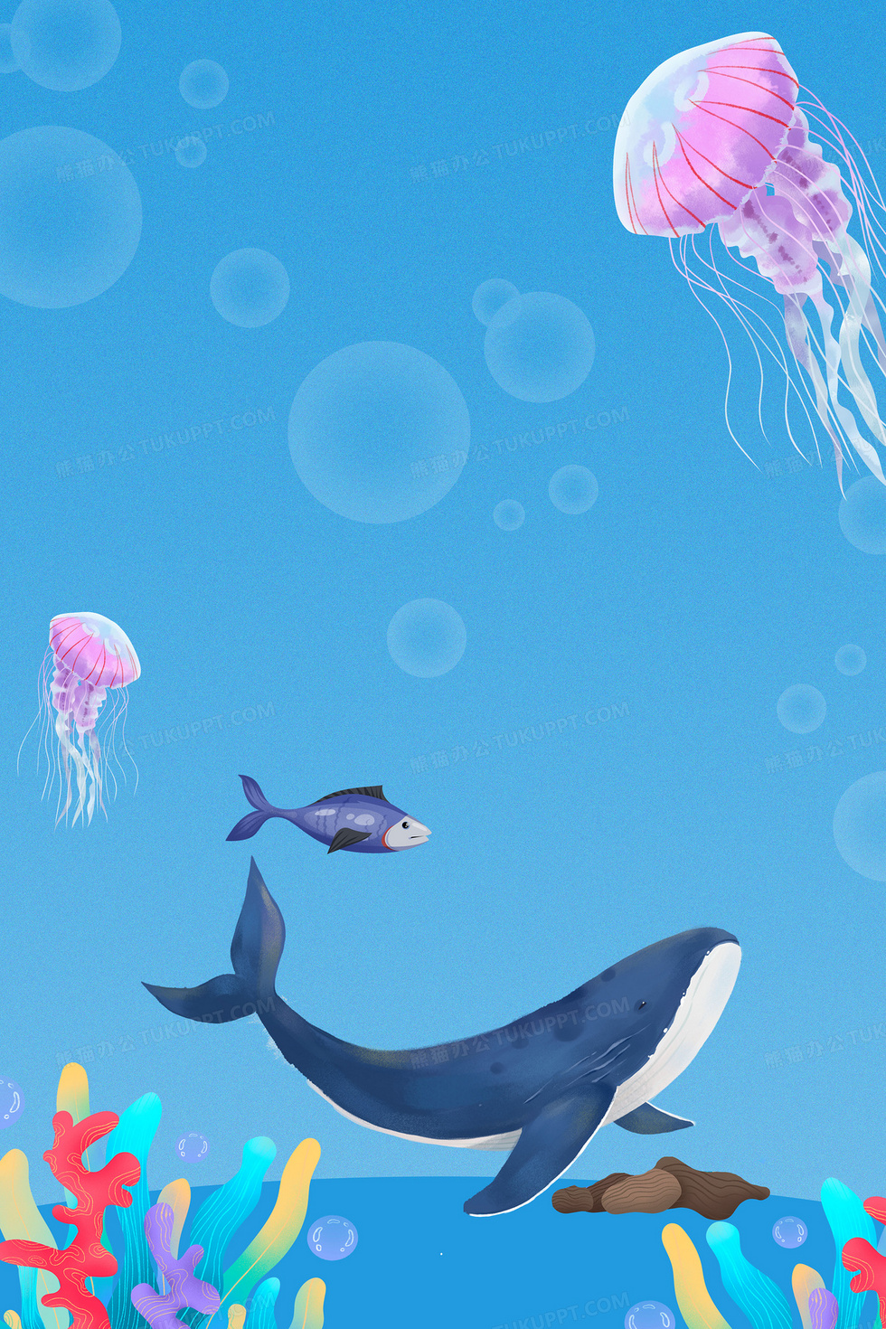 本作品内容为世界海洋日蓝色海底背景, 格式为 psd, 大小147 MB, 图片尺寸为3543 x 5314, 作品中背景图片无需修改, 源文件无水印,可以直接使用, 欢迎使用熊猫办公。 如认为平台内容涉嫌侵权,可通过邮件:tousu@tukuppt.com提出书面通知,我们将及时处理。