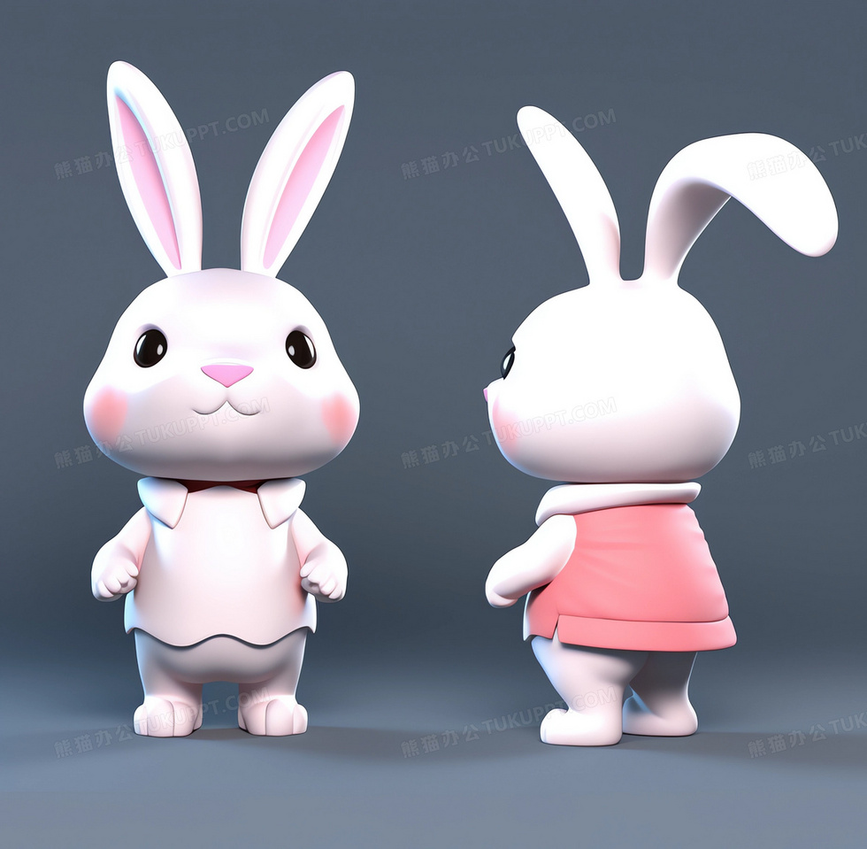 本作品内容为可爱兔子C4D模型前后角度视图, 格式为 jpg, 大小2 MB, 图片尺寸为1832 x 1792, 源文件无水印, 欢迎使用熊猫办公。 如认为平台内容涉嫌侵权,可通过邮件:tousu@tukuppt.com提出书面通知,我们将及时处理。