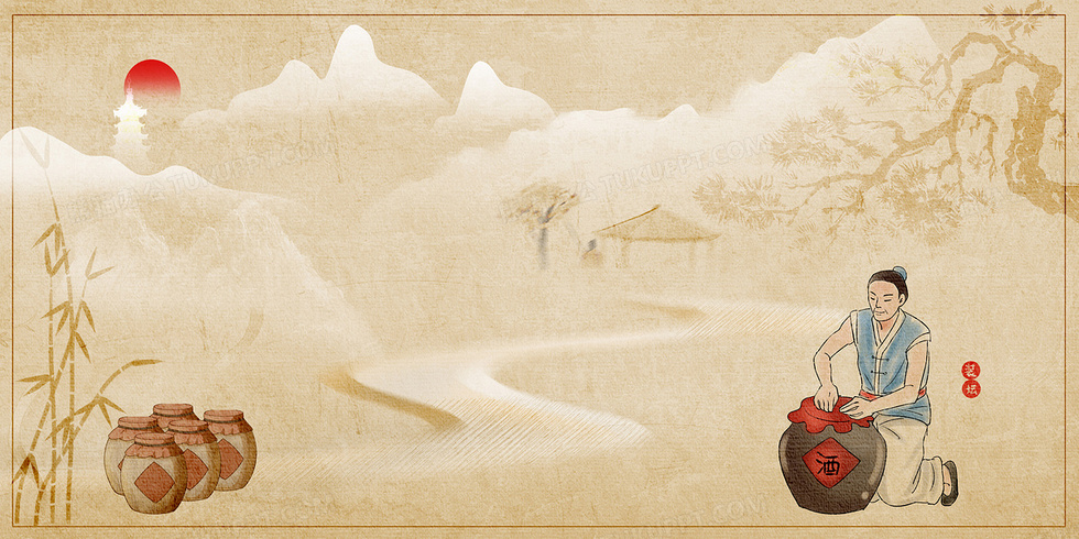 本作品内容为古风酿酒装坛背景, 格式为 psd, 大小108 MB, 图片尺寸为4722 x 2361, 作品中背景图片无需修改, 源文件无水印,可以直接使用, 欢迎使用熊猫办公。 如认为平台内容涉嫌侵权,可通过邮件:tousu@tukuppt.com提出书面通知,我们将及时处理。