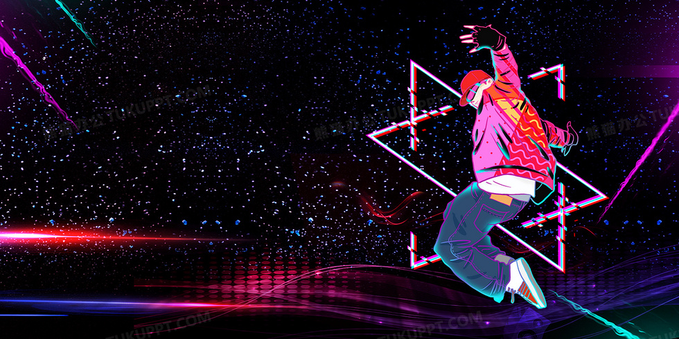本作品内容为炫酷创意时尚简约大气街舞背景, 格式为 psd, 大小48 MB, 图片尺寸为4724 x 2362, 作品中背景图片无需修改, 源文件无水印,可以直接使用, 欢迎使用熊猫办公。 如认为平台内容涉嫌侵权,可通过邮件:tousu@tukuppt.com提出书面通知,我们将及时处理。