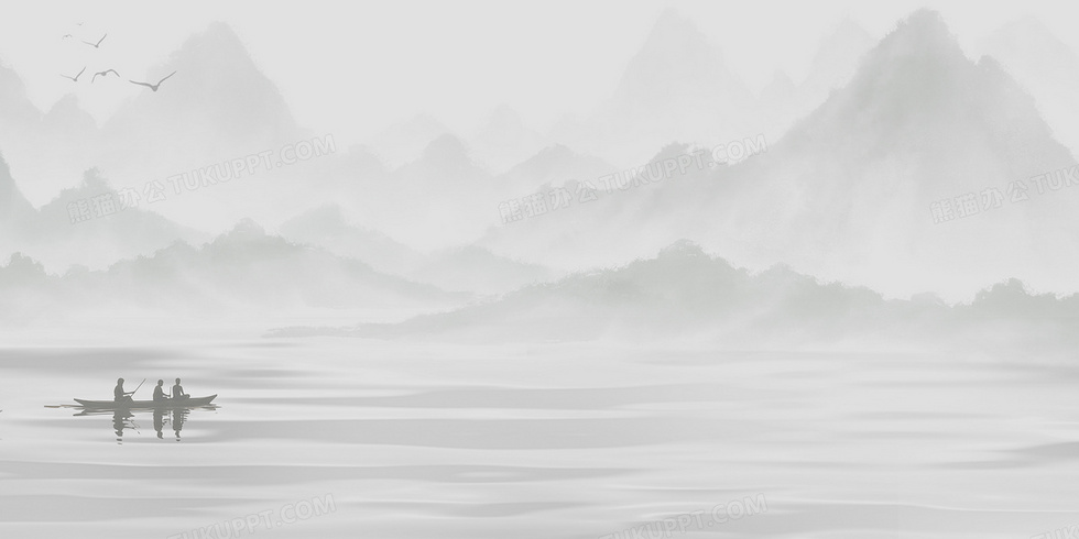 本作品内容为竹筏水墨山水背景, 格式为 psd, 大小9 MB, 图片尺寸为4722 x 2361, 作品中背景图片无需修改, 源文件无水印,可以直接使用, 欢迎使用熊猫办公。 如认为平台内容涉嫌侵权,可通过邮件:tousu@tukuppt.com提出书面通知,我们将及时处理。