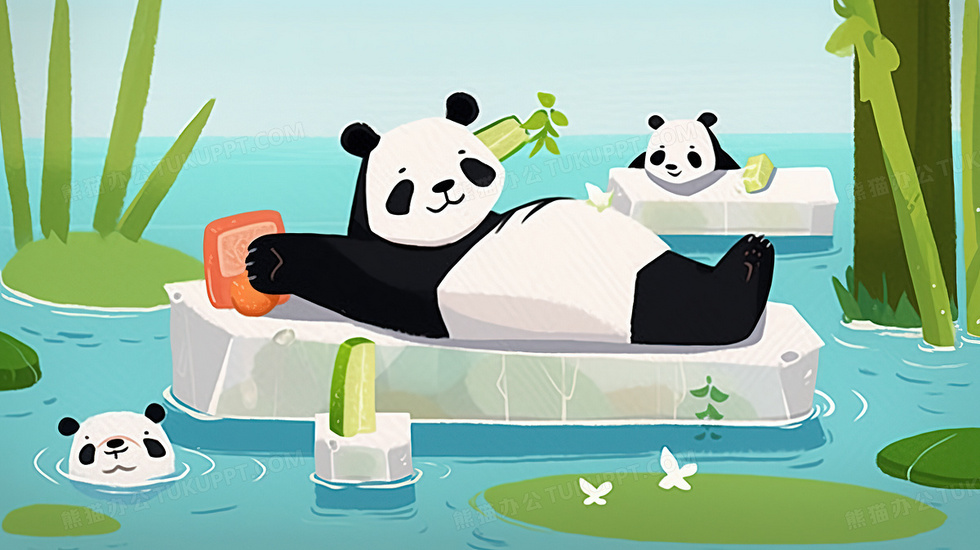 本作品内容为夏天大熊猫趴在冰块上降温插画, 格式为 jpg, 大小6 MB, 图片尺寸为2912 x 1632, 源文件无水印, 欢迎使用熊猫办公。 如认为平台内容涉嫌侵权,可通过邮件:tousu@tukuppt.com提出书面通知,我们将及时处理。