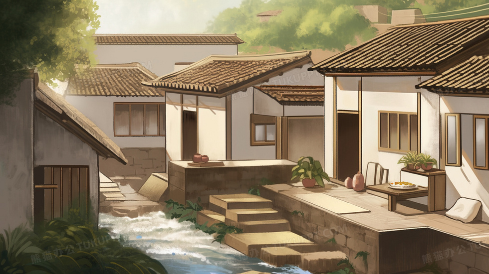 本作品内容为中国农村旧房子插画, 格式为 jpg, 大小3 MB, 图片尺寸为2912 x 1632, 源文件无水印, 欢迎使用熊猫办公。 如认为平台内容涉嫌侵权,可通过邮件:tousu@tukuppt.com提出书面通知,我们将及时处理。