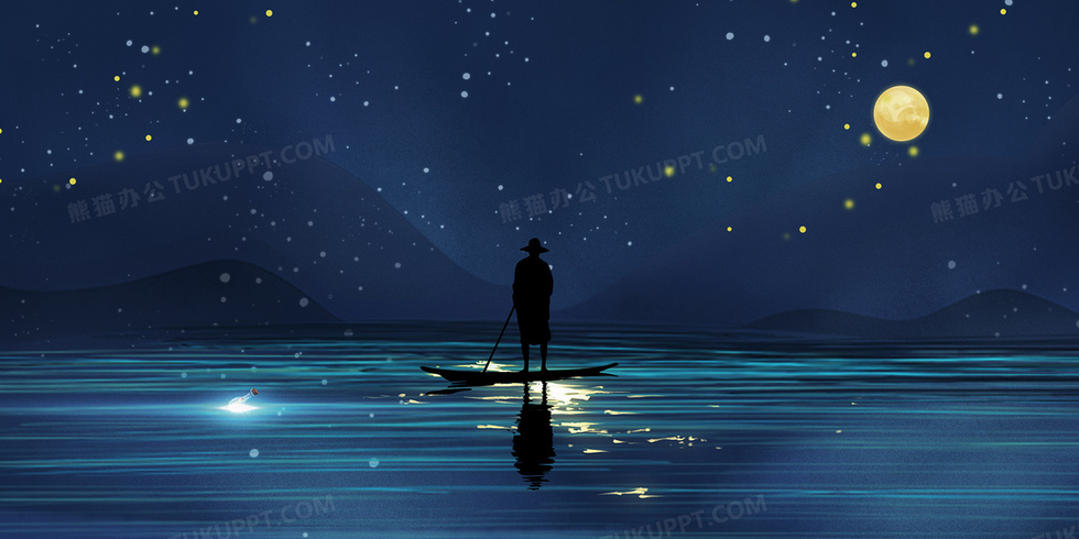 本作品内容为夜晚竹筏剪影卡通文艺背景, 格式为 psd, 大小71 MB, 图片尺寸为4724 x 2362, 作品中背景图片无需修改, 源文件无水印,可以直接使用, 欢迎使用熊猫办公。 如认为平台内容涉嫌侵权,可通过邮件:tousu@tukuppt.com提出书面通知,我们将及时处理。