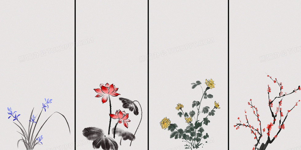 本作品内容为水墨四季花朵合成背景, 格式为 psd, 大小62 MB, 图片尺寸为4722 x 2361, 作品中背景图片无需修改, 源文件无水印,可以直接使用, 欢迎使用熊猫办公。 如认为平台内容涉嫌侵权,可通过邮件:tousu@tukuppt.com提出书面通知,我们将及时处理。