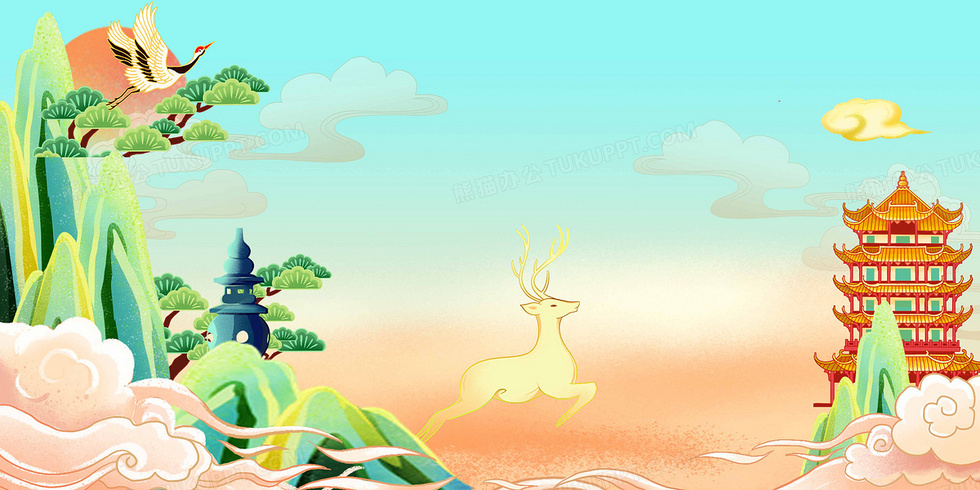 本作品内容为国潮风麋鹿背景, 格式为 psd, 大小64 MB, 图片尺寸为4724 x 2362, 作品中背景图片无需修改, 源文件无水印,可以直接使用, 欢迎使用熊猫办公。 如认为平台内容涉嫌侵权,可通过邮件:tousu@tukuppt.com提出书面通知,我们将及时处理。
