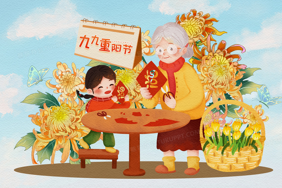 本作品内容为九九重阳节祖孙俩做剪纸福字传统文化创意插画, 格式为 psd, 大小168 MB, 请使用软件PhotoShop(CC)打开, 源文件无水印, 欢迎使用熊猫办公。 如认为平台内容涉嫌侵权,可通过邮件:tousu@tukuppt.com提出书面通知,我们将及时处理。