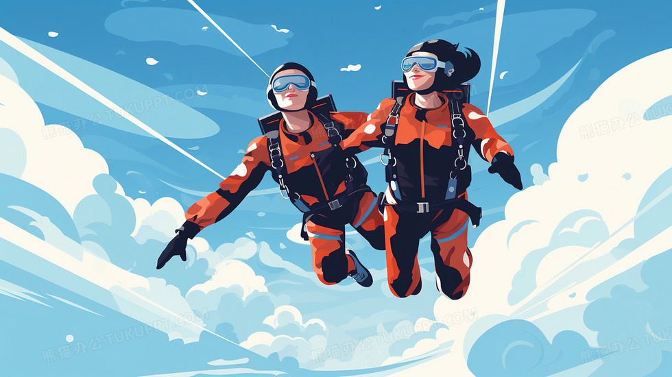 本作品内容为卡通蓝天白云跳伞场景插画, 格式为 jpg, 大小2 MB, 图片尺寸为2912 x 1632, 源文件无水印, 欢迎使用熊猫办公。 如认为平台内容涉嫌侵权,可通过邮件:tousu@tukuppt.com提出书面通知,我们将及时处理。