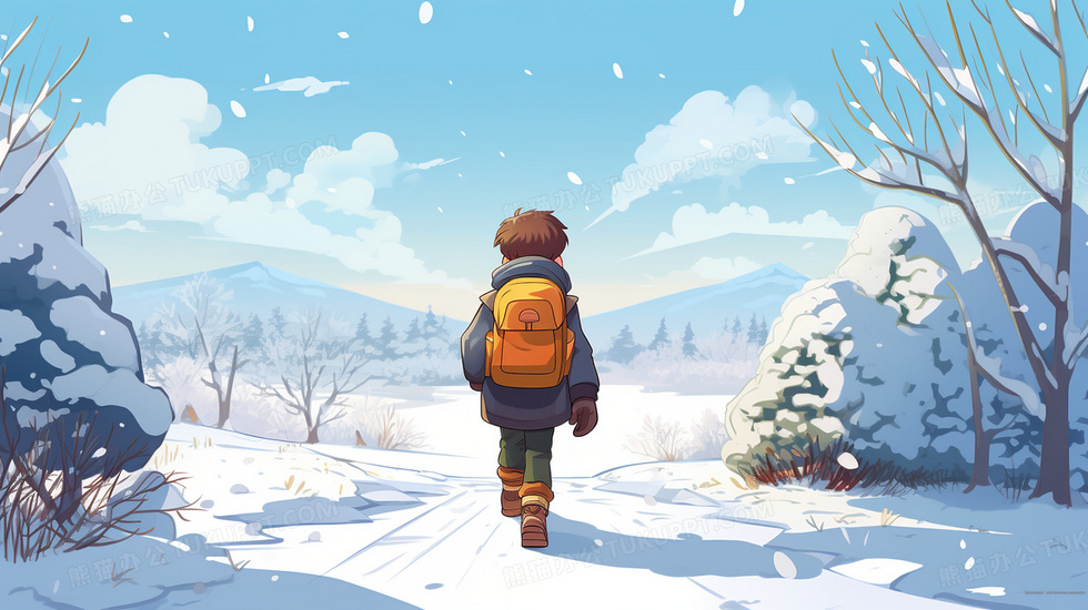 本作品内容为卡通男孩冬天在雪地散步行走场景插画, 格式为 jpg, 大小5 MB, 图片尺寸为2912 x 1632, 源文件无水印, 欢迎使用熊猫办公。 如认为平台内容涉嫌侵权,可通过邮件:tousu@tukuppt.com提出书面通知,我们将及时处理。